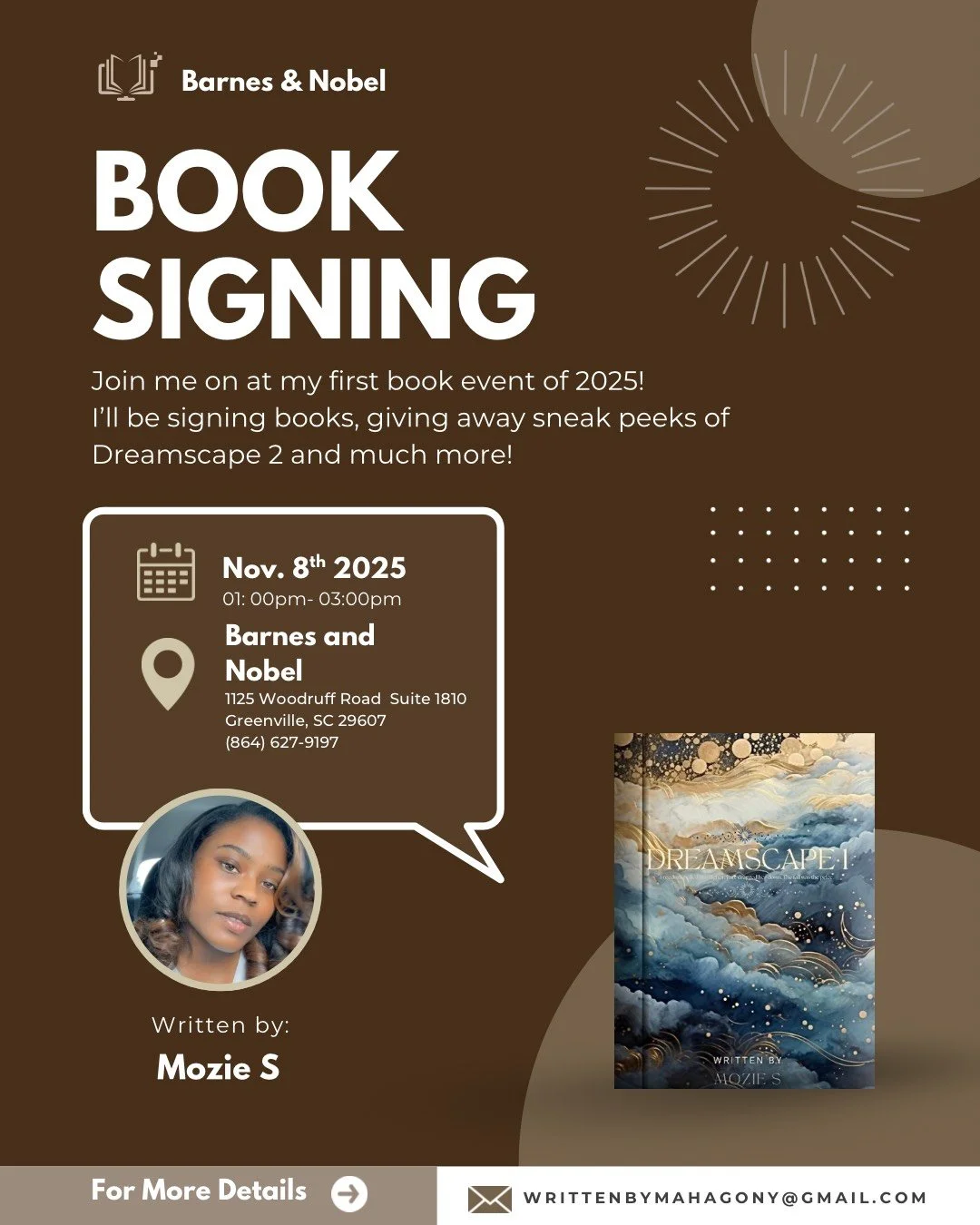 Every Tuesday at 7:00 p.m., I go live to read chapters from my book, Dreamscape. Bringing viewers deeper into the world I created. Along the way, I share exciting updates on what I am working on, including book events, bookstores that will be carrying Dreamscape, and more!