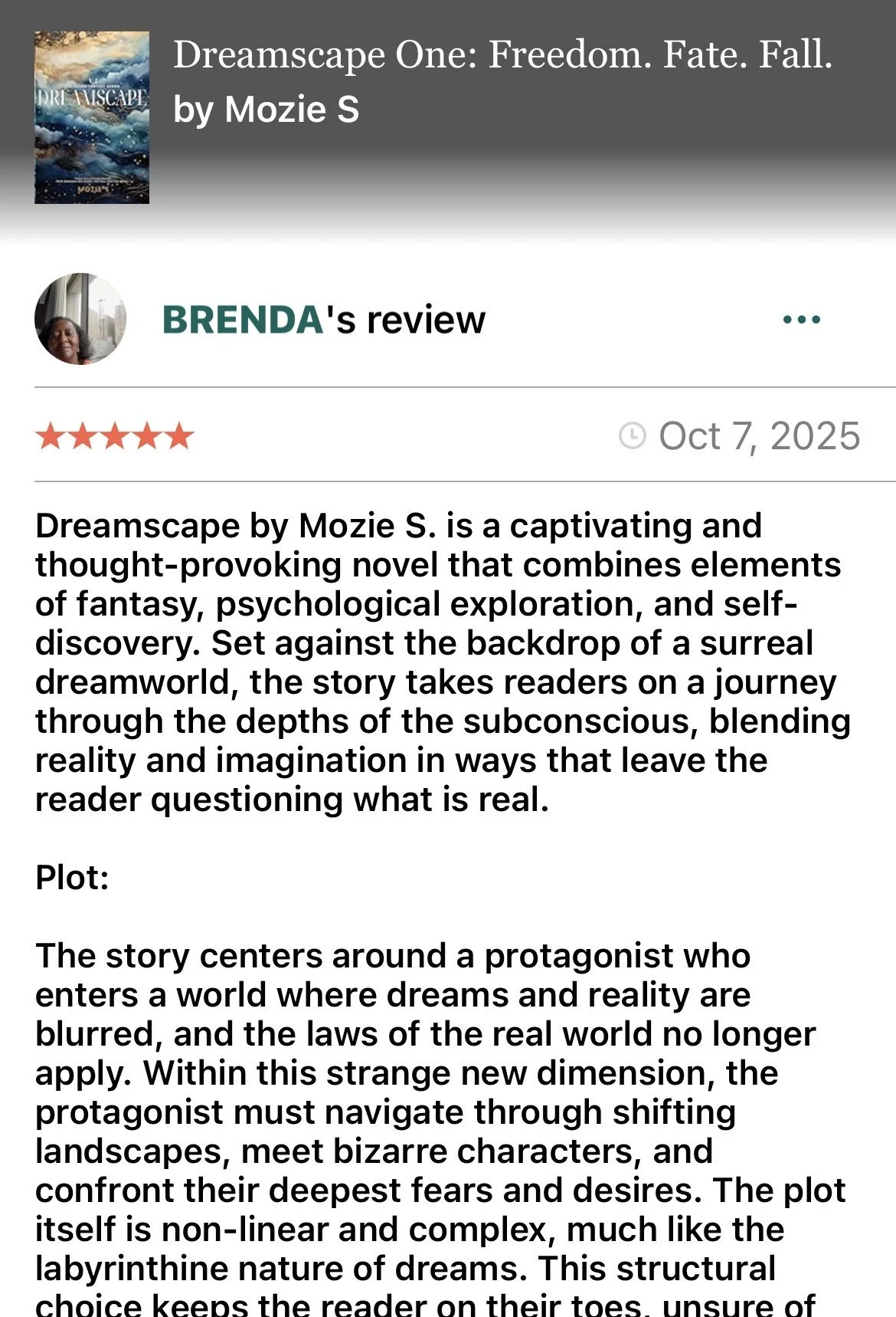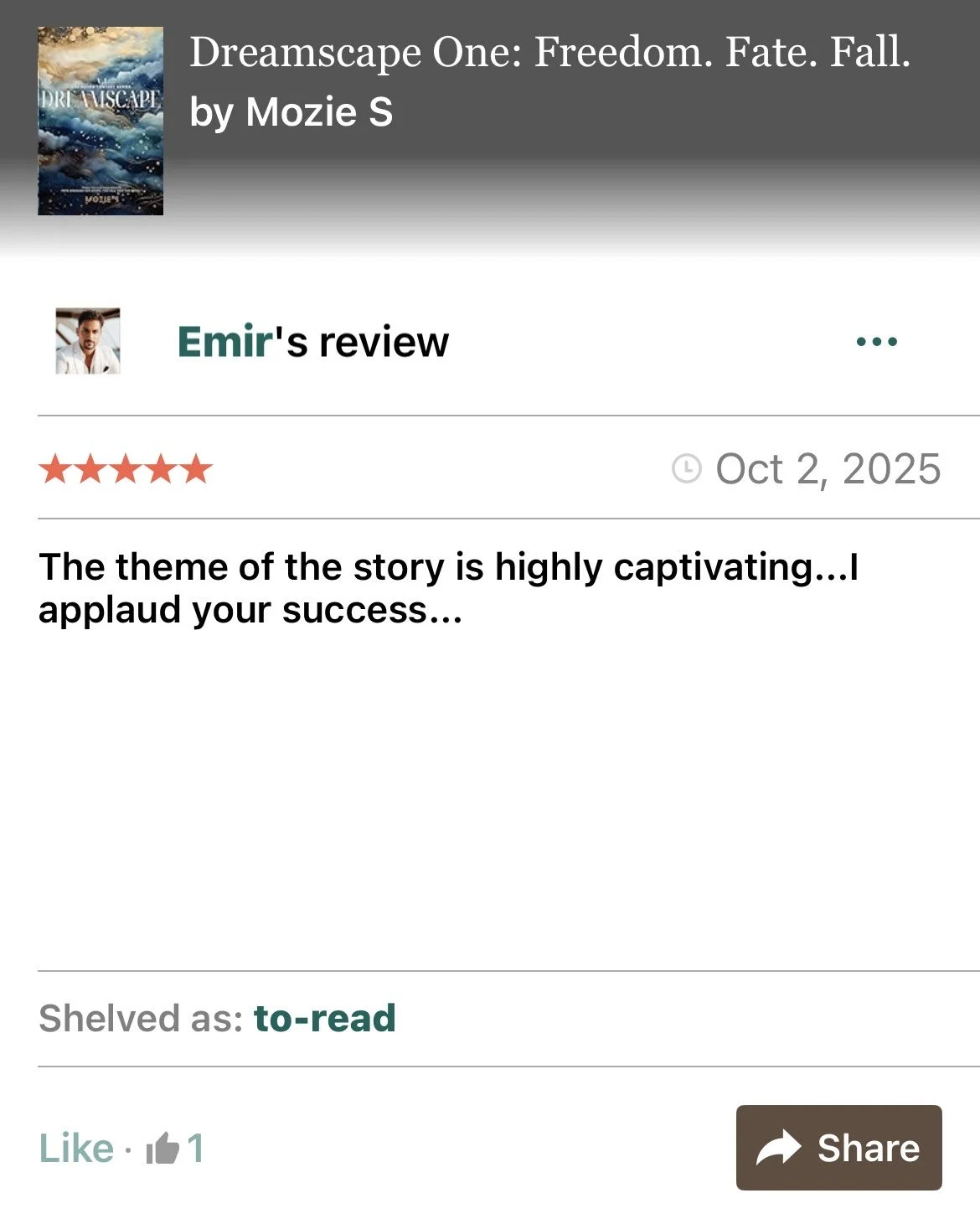 “ Very interesting story and I would recommend to friends. Intriguing. Plot and characters are interesting. In a good way.”